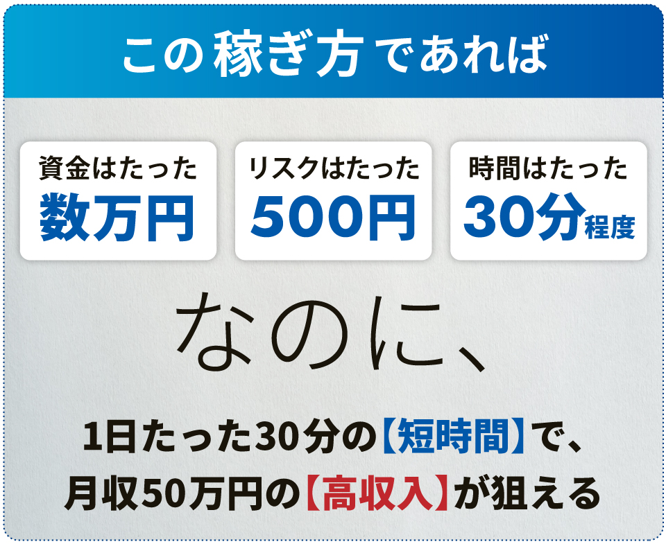 私の前職は、ハウスメーカーの営業職だったのですが、この手法に出会って3ヶ月で50万くらい稼げたので、すぐに退職してコレ一本にしています。