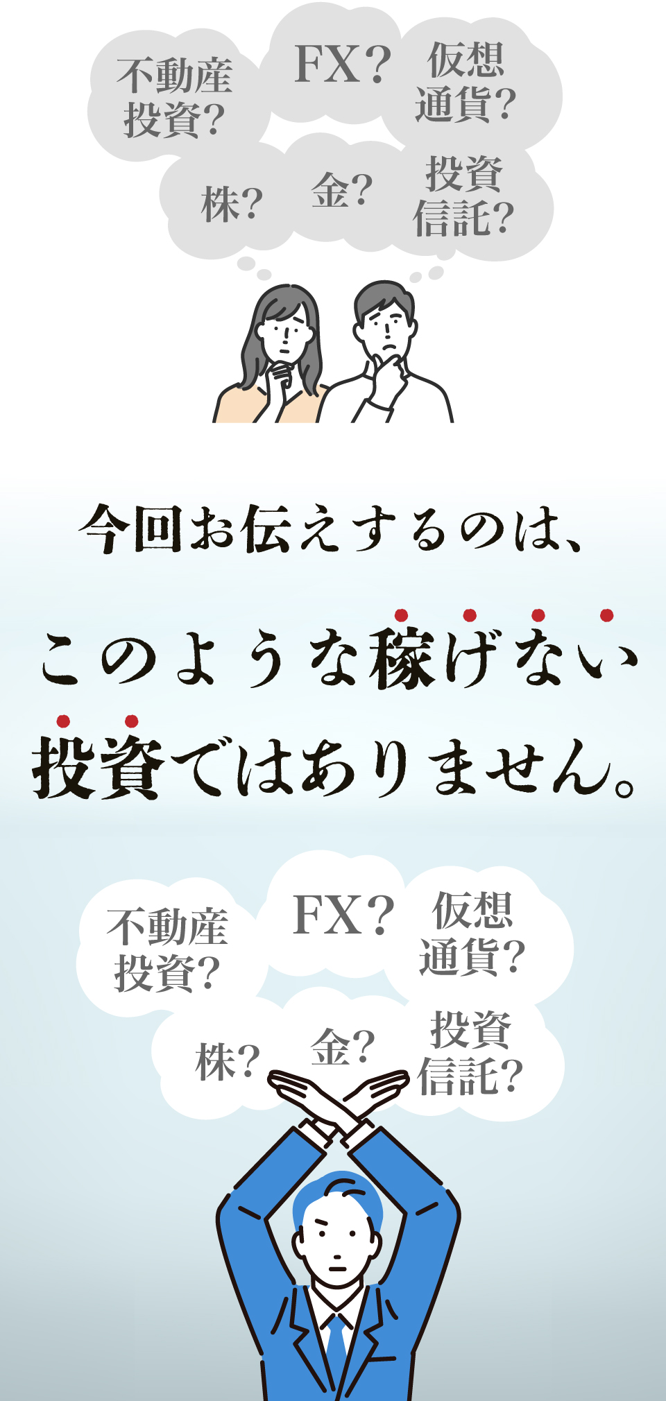 正直なところ、投資にはいい思いをしたことがなかったのですが、投資戦略フェアで先生の講演を観て、この人は本物だなとすぐに感じました。